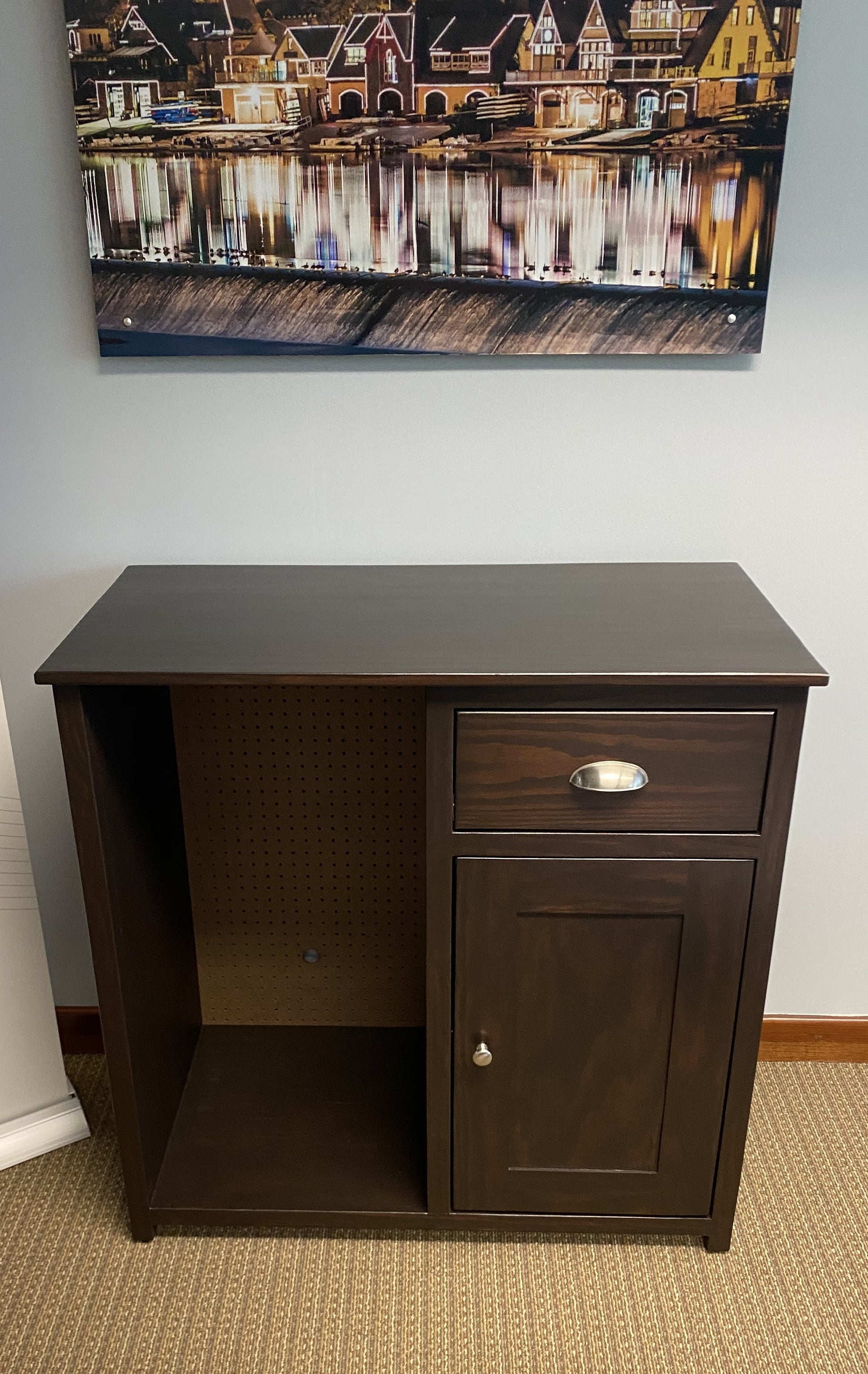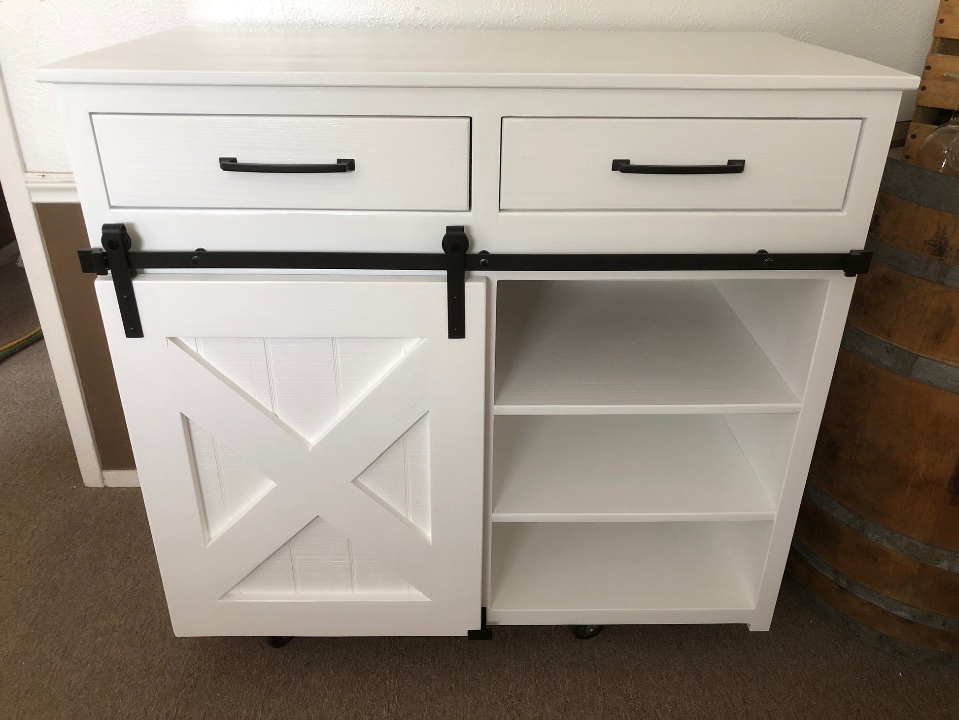 Opening for cooler/mini refrigerator 18(W) x 20(D) x 36(H) (Cooler opening will be on the left side, facing the sideboard, unless requested otherwise)